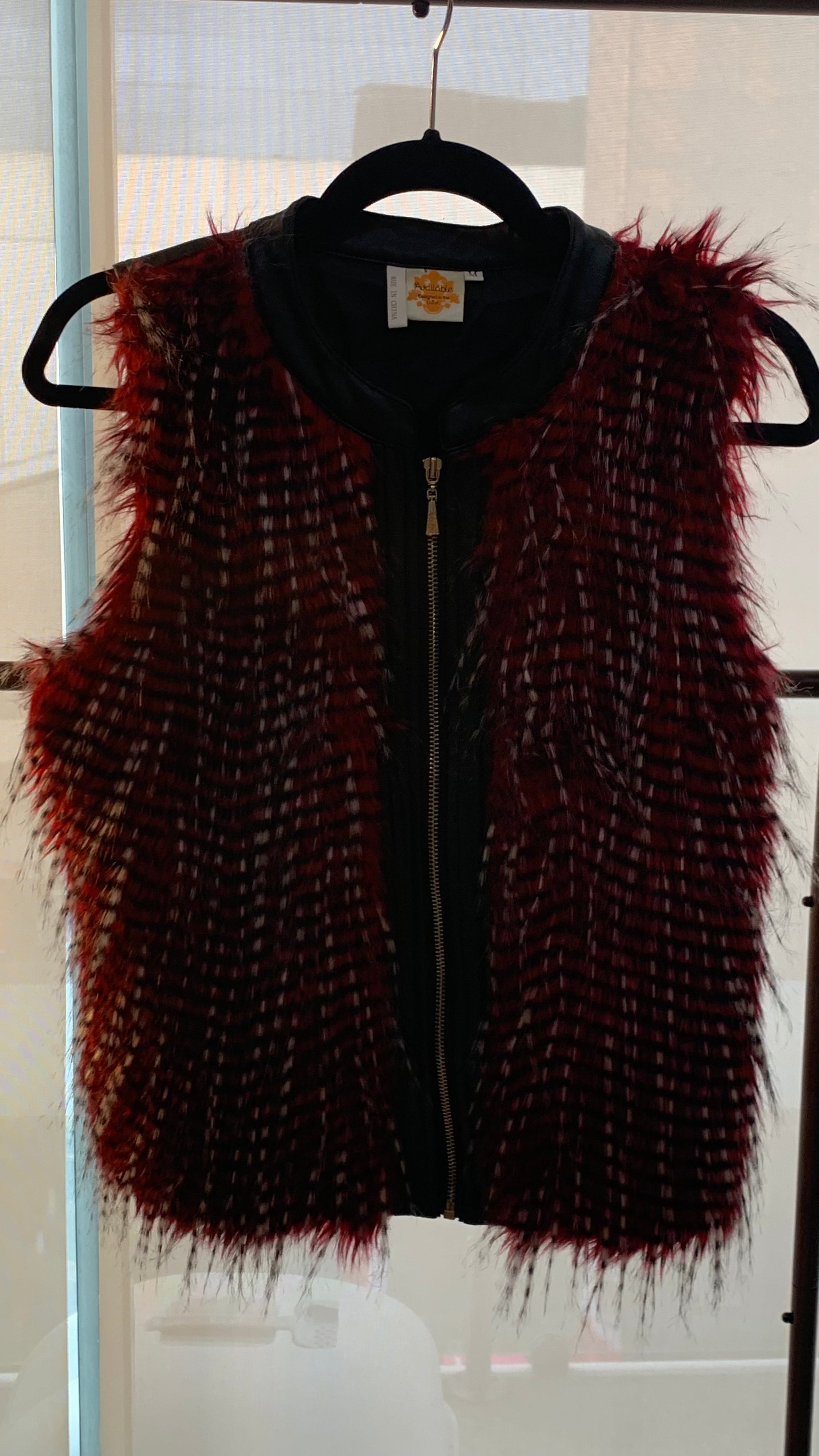 Chaleco de piel con plumas rojas